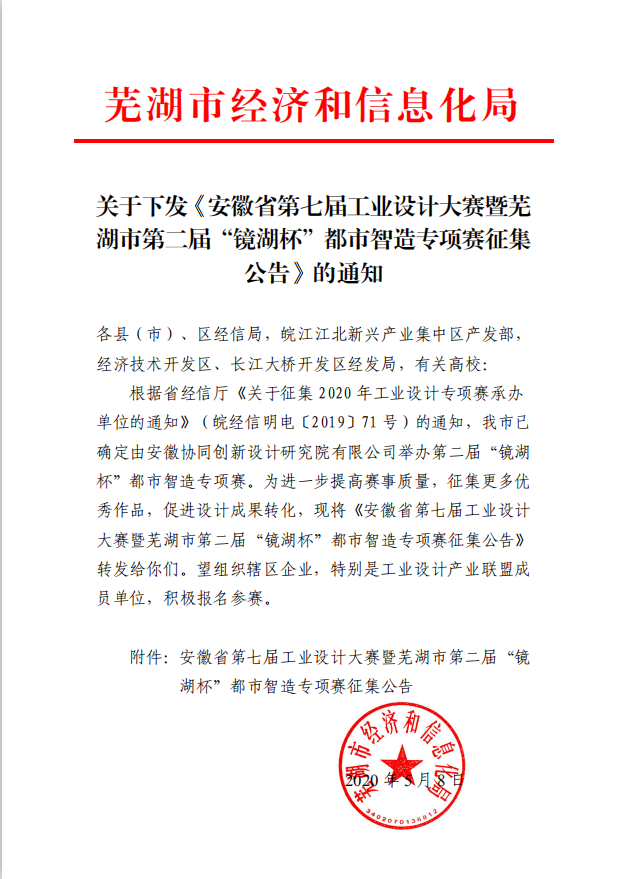 為進一步加快蕪湖市現(xiàn)代制造產(chǎn)業(yè)的升級轉(zhuǎn)型,加速工業(yè)設(shè)計與制造的融合,培養(yǎng)工業(yè)設(shè)計人才,決定舉辦安徽省第七屆工業(yè)設(shè)計大賽暨蕪湖市第二屆“鏡湖杯”都市智造專項賽。