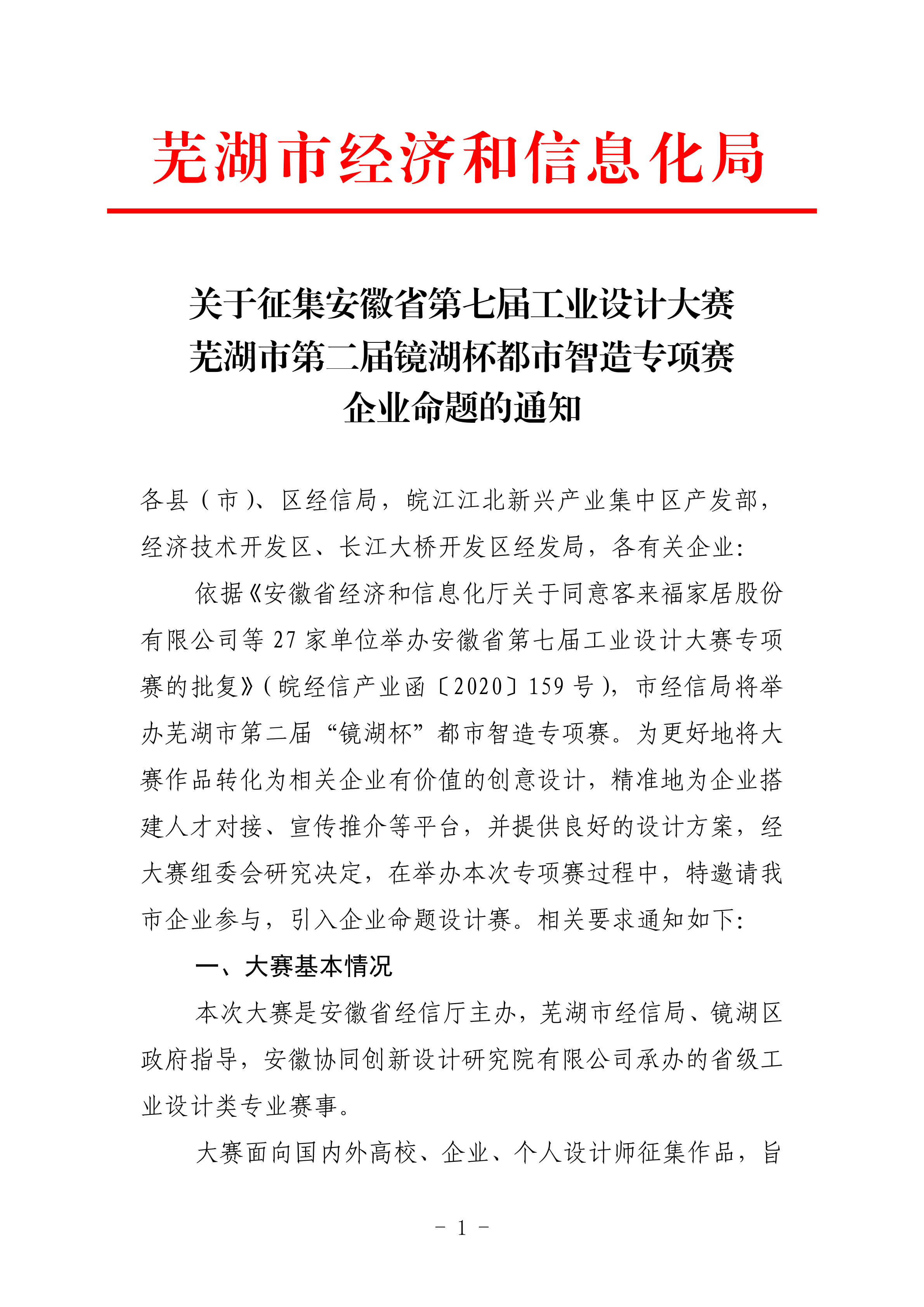 關于征集安徽省第七屆工業設計大賽蕪湖市第二屆鏡湖杯都市智造專項賽企業命題的通知