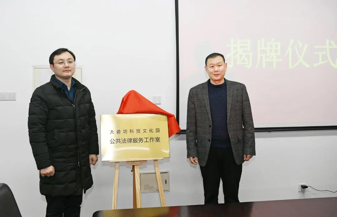 區委常委、政法委書記魏峰與園區負責人卞國琛共同為園區公共法律服務工作室揭牌。魏書記表示,園區公共法律服務工作室的成立,進一步優化營商環境,推動市、區做好“六穩”工作,落實“六保”任務,更好的發揮司法職能作用,為我區經濟高質量發展保駕護航。